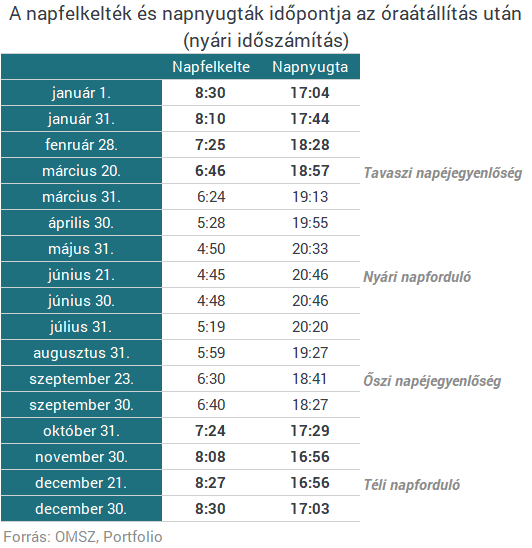 A Föld tengelyének dőlése miatt folyamatosan változik, meddig is van világos egész évben. Ezen a szélességi körön egészen a téli legrosszabb alig 8,5 órától a nyári 16,5-ig. Ha ezt nézzük, látható, hogy télen mindenképpen szívás, az alig 9 óra nem fedi le senkinek az átlagos napját. Ezzel szemben nyáron csak alvásra marad sötét és már igen korán hajnalodik. Ezért is jó ötlet az állítgatás - mind a két időszakból próbálunk többet lecsípni.